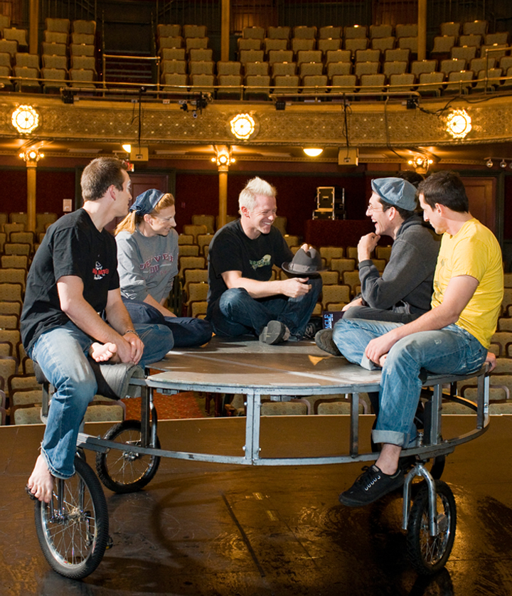 Cirque Mechanics inspired by modern circus, finds its roots in the mechanical and its heart in the stories of American industrial ingenuity. The shows, imbedded in realism, display a raw quality rarely found in modern circus. Cirque Mechanics signature style is wrapped in acrobatics, mechanical marvels and a bit of clowning around. This sensibility can be found in our five theatrical productions, “Birdhouse Factory”, “Boom Town”, “Pedal Punk”, “42ft” , and “Zephyr” and we are excited to bring this unique approach to circus to “Cirque Mechanics Under Canvas” our brand new tent project that we launched in the summer of 2022.
